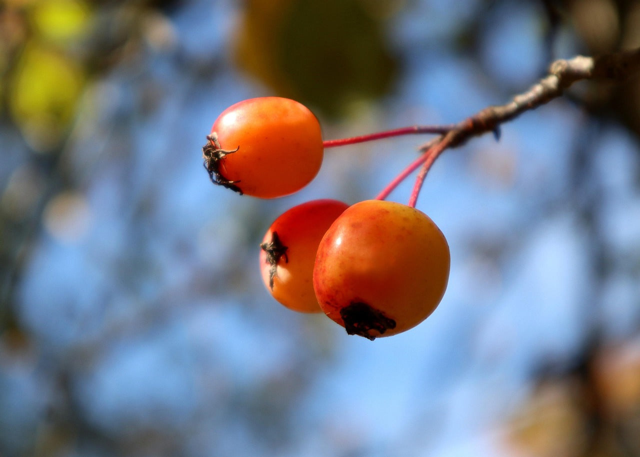 Rich in Vitamin C, these can last into midwinter, and are eaten by finches, thrushes and blackbirds.