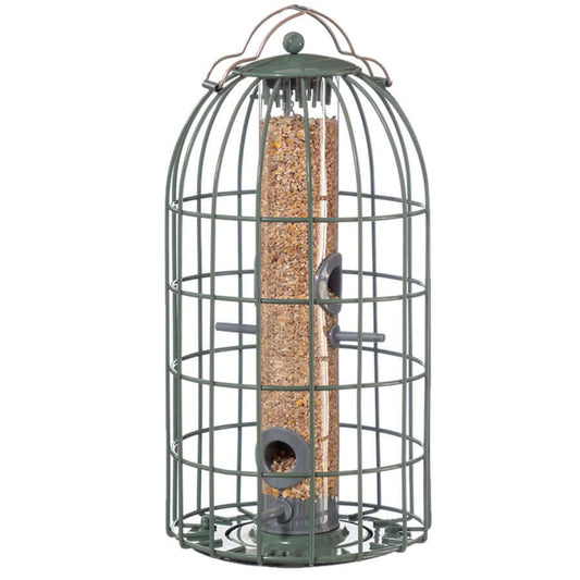 Choose a squirrel-resistant bird feeder from a diverse range of options available. Our feeders vary in shapes and sizes, with some featuring protective cages that prevent squirrels from accessing the seed reserves. The most a squirrel can do is nibble at the feeder cage itself, discouraging them from obtaining the food. Over time, the squirrel will likely search for alternative sources of nourishment.