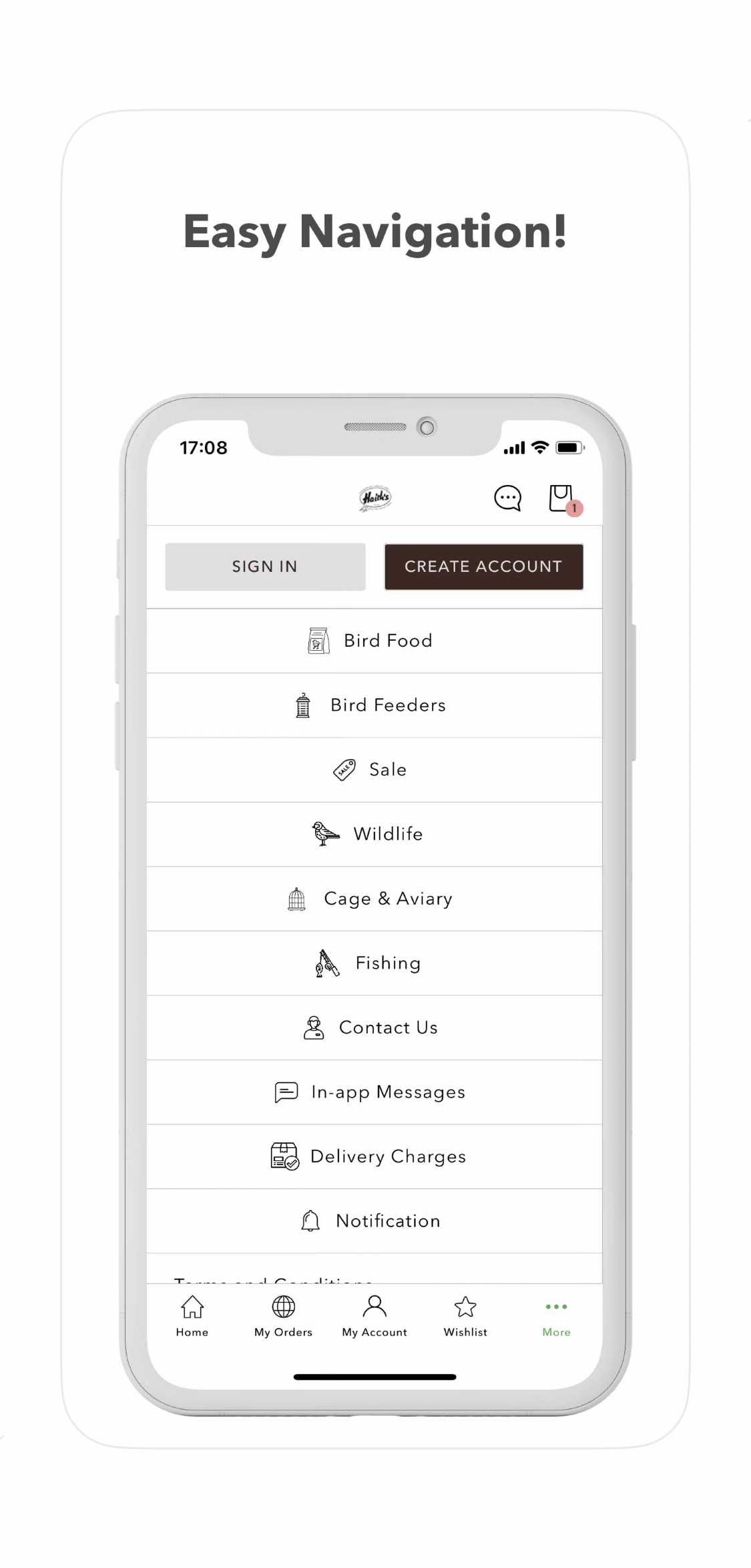Access categories at the touch of a button, amend your orders and view your wishlist with our easy-to-use navigation.