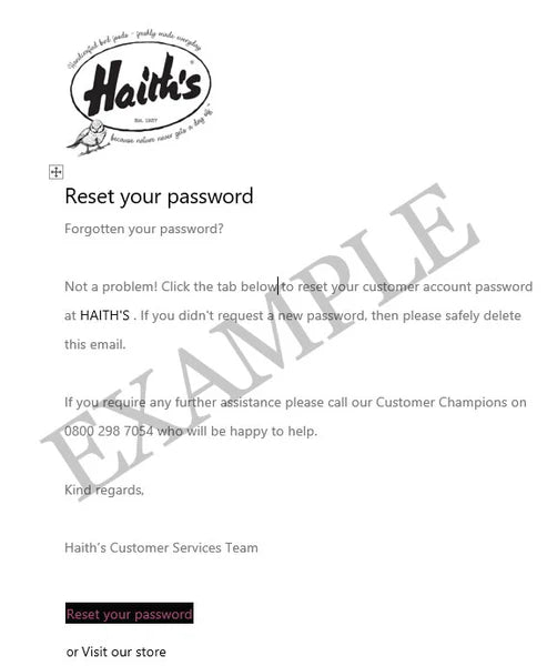 Once you can see the above message please check your emails for a message like the one on the left.. (check your spam filter or junk email and add Haith's to your list of safe email senders to prevent this from happening again).