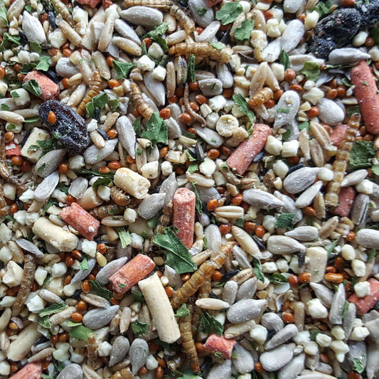 Insects like ants and beetles offer additional protein and are a natural source of essential amino acids. They also provide calcium, which is crucial for strong bones and beaks. There's dried insects in our Hi-Energy Insect Suet Pellets.